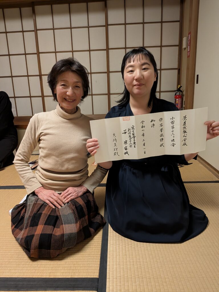 また、水曜日の夜の初釜では許状をお渡しさせていただきました。